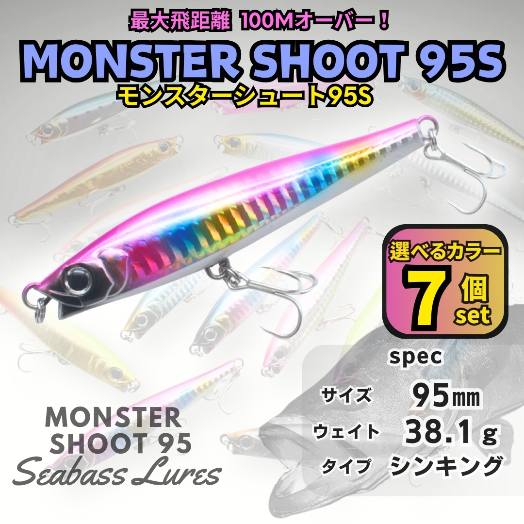 - 【送料無料】モンスターシュート95S 38g 7個セット シーバスルアー シンキングペンシル モンスターショット好きに!圧倒的飛距離