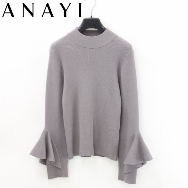 > 【KA305】美品◆ANAYI アナイ ラッフルスリーブ リブ ニット セーター トップス プルオーバー グレー 38