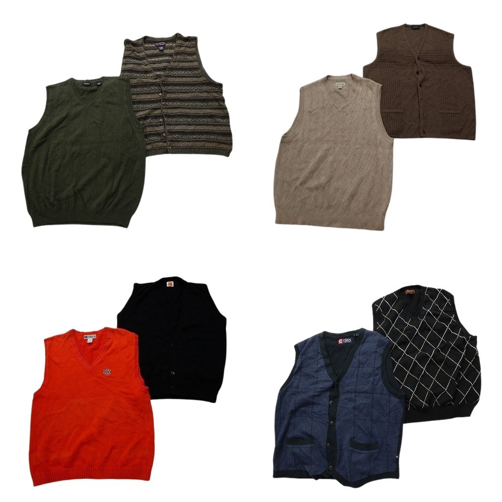 > 古着卸 まとめ売り ニットベスト セーター 8枚セット (メンズ L ) アーガイルチェック Vネック ベストカーディガン NC3040 1円スタート