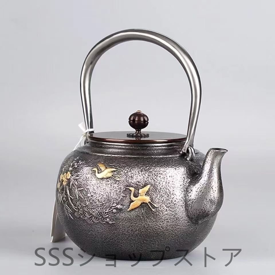 - 高品質★南部鉄器 大容量 鉄瓶 コーティングなし 手作り純鉄 やかんを沸かす お茶の道具 提梁壺 1400ML