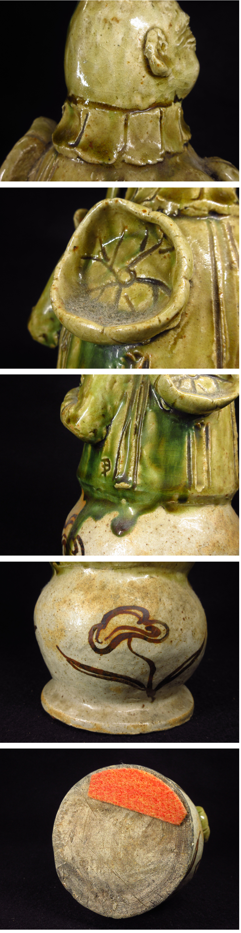 - 【漸】秀逸時代茶道具 織部南蛮人燭台 織部焼 蝋燭立 窯印有 古美術 本物保証【HY2696】