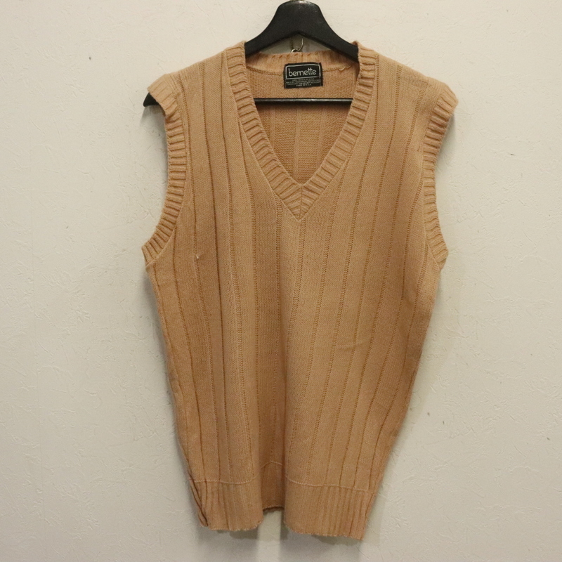 > m229 90sビンテージ bemette アクリルニットベスト USA製■1990年代製 約Sサイズ ベージュ 無地 Vネック アメカジ 古着 古着卸 00s