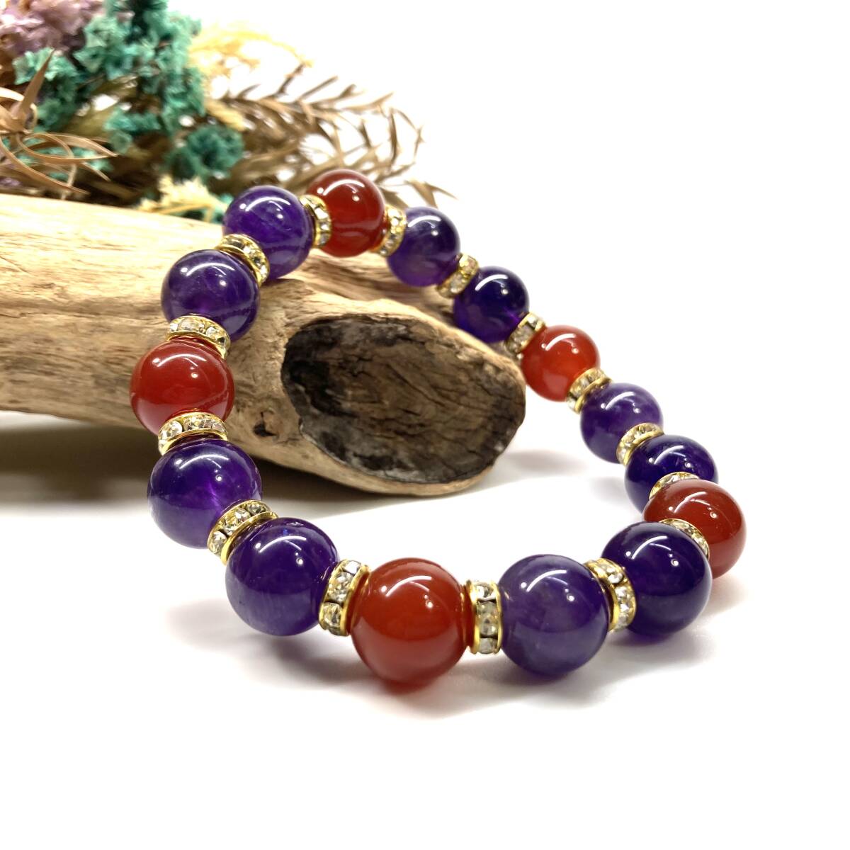 > 赤瑪瑙&アメジスト パワーストーン ブレスレット 天然石ブレス (ゴールド) 12mm 金運 仕事運 メンズ・レディース 男性 女性