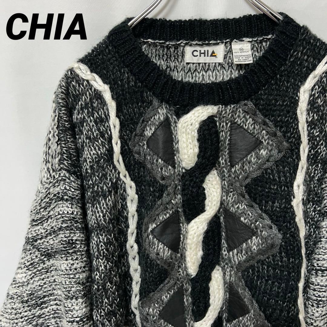- N-5823 CHIA 古着 総柄 アクリル ニット セーター ケーブル編み M メンズ