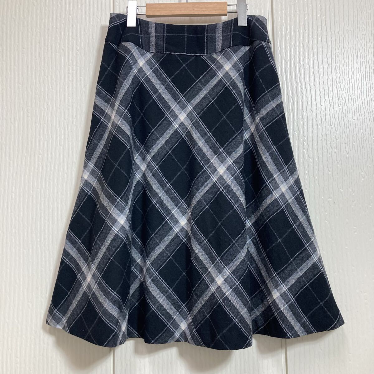 > 242 LEILIAN レリアン 近年 ストレッチ ウール チェック フレアスカート 11号 ブラック 黒 秋冬 レディース 51015I