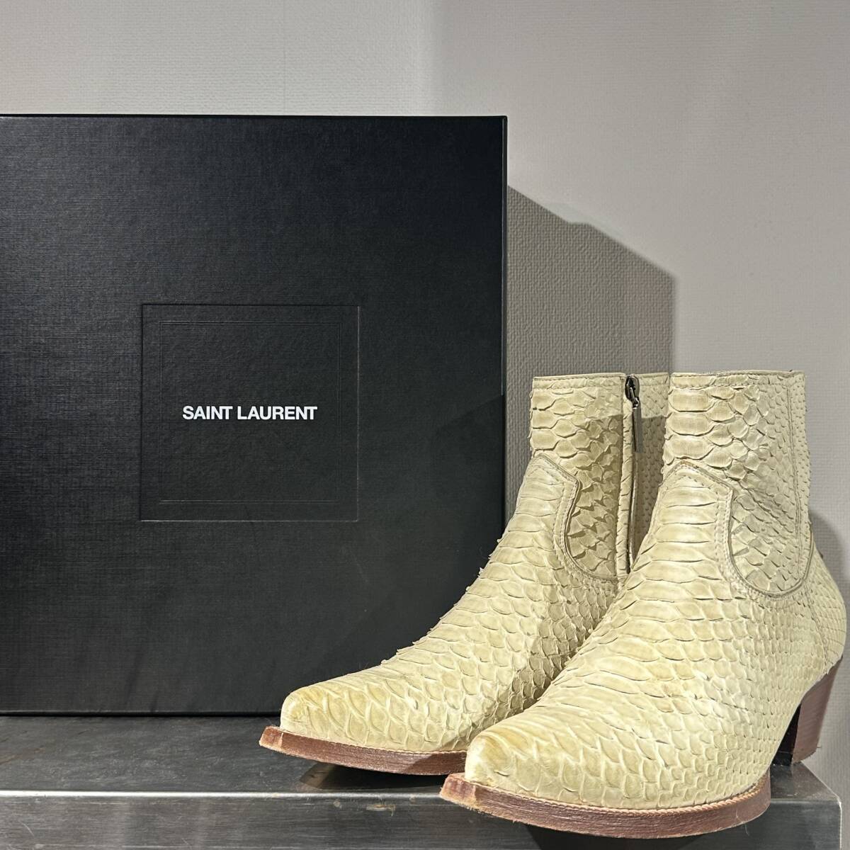 - SAINT LAURENT サンローラン Python Cowboy Boots レザーヒールブーツ 650095 クリーム size:43(28cm)【表参道A10】