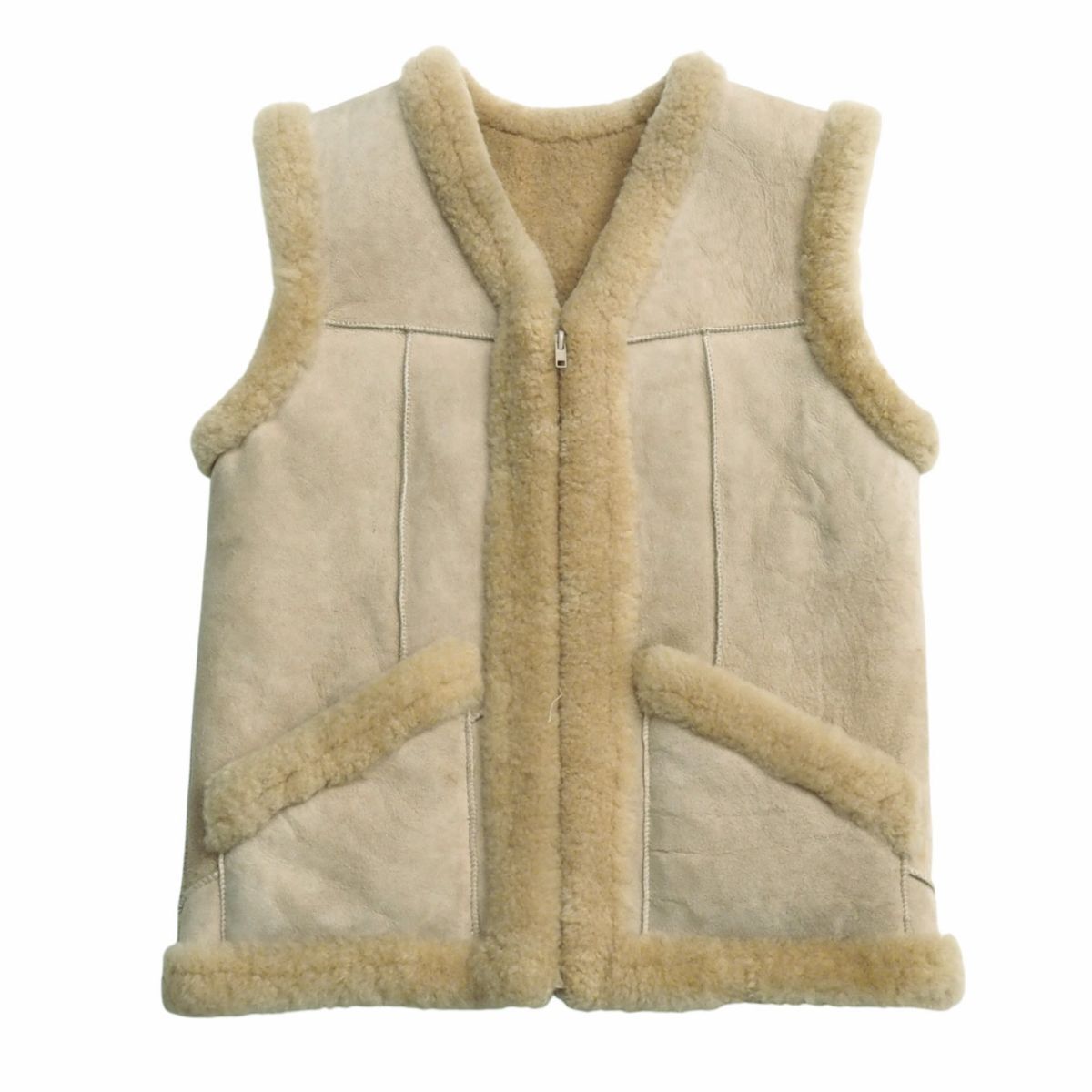 - TJ5226◎Ausfurs メンズ リバーシブル リアルムートンベスト ジップアップ シープスキン 毛皮 ファーベスト ベージュ系