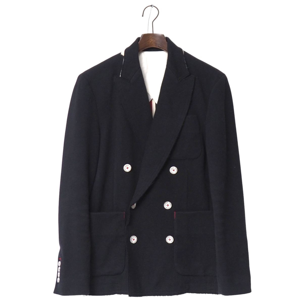 - TJ4977▽D/him/ディーヒム メンズ44 コットンジャージー ダブルブレスト テーラードジャケット ブレザー ダークネイビー系