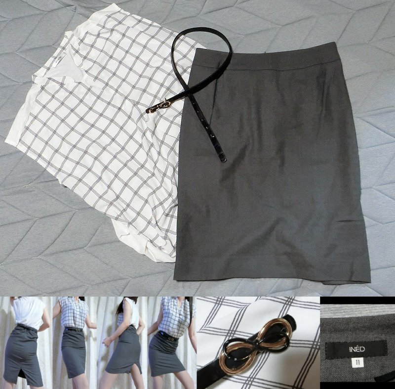 - f85★スカートはイネド★ベルトもセットです★③点セット★カットソー&タイト&ベルト