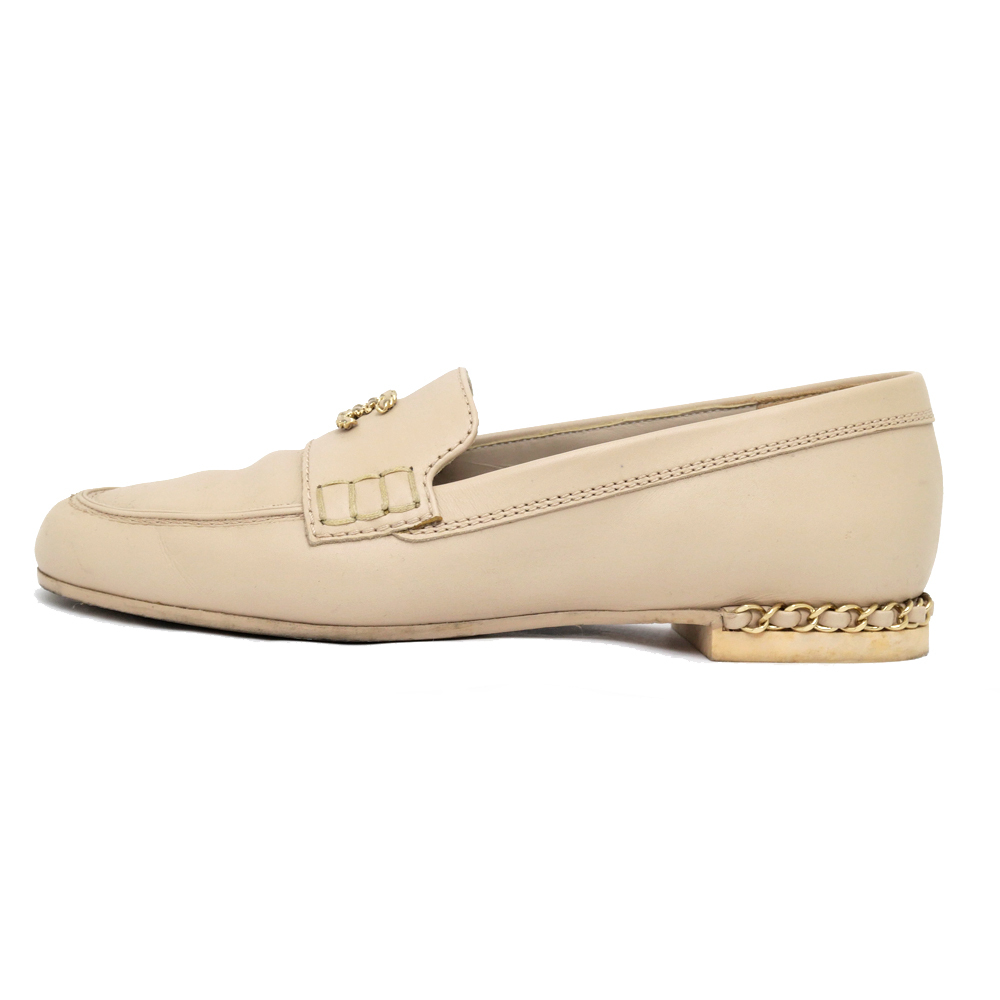> 【名東】シャネル ローファー G35067 X53055 OH875 ココマーク ベージュ ゴールド金具 チェーン 19A サイズ37 レディース 靴