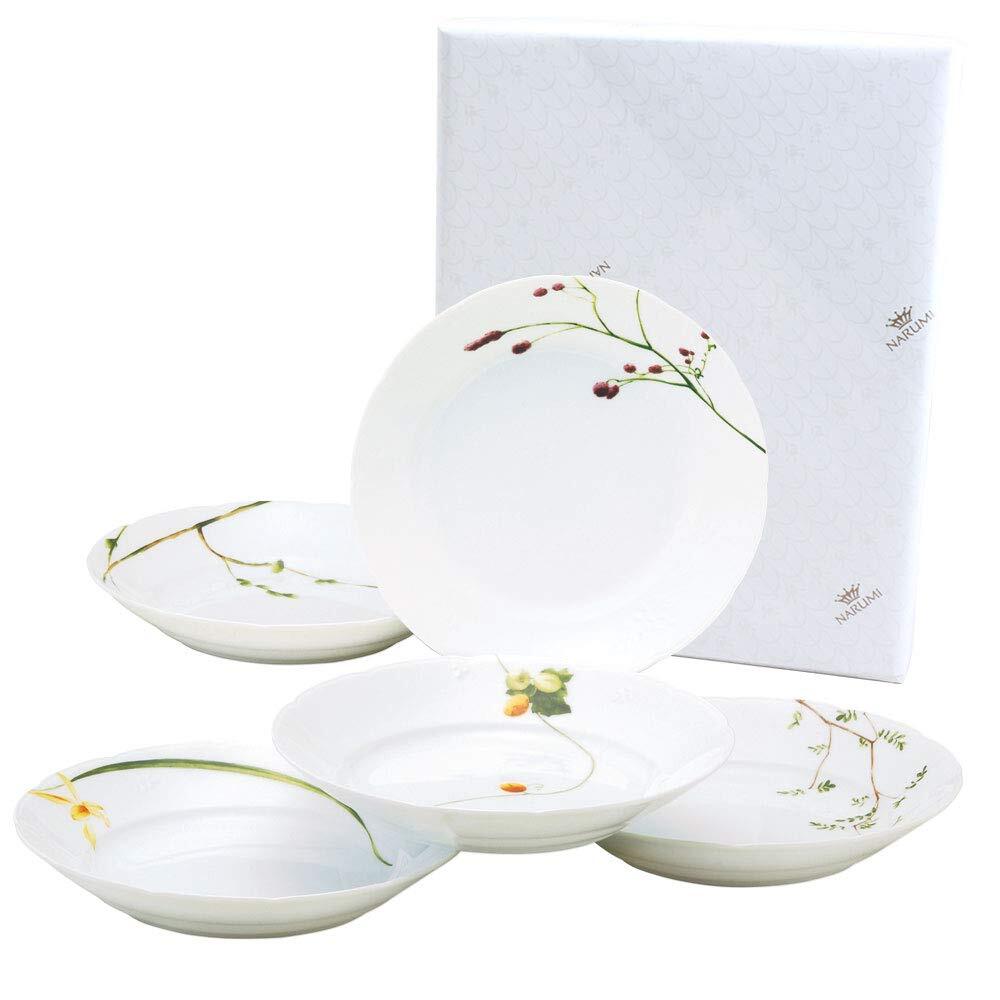 > NARUMI(ナルミ) プレート 皿 セット 里花暦(さとはなごよみ) 径21cm グリーン 花柄 5柄セット かわいい カレー皿 パスタ皿 結