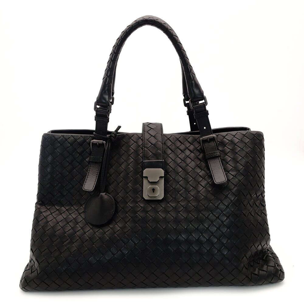 - ボッテガヴェネタ Bottega Veneta イントレチャート ローマ トートバッグ レザー ブラック 黒 ビジネス 7-9-638