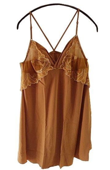 - SI5514-2◇ 新品 下着 インナー スリップ 肩紐調節可 V字バック紐 背中見せ カシュクール 95- 80サイズ シャイニーブラウン 送料 350円