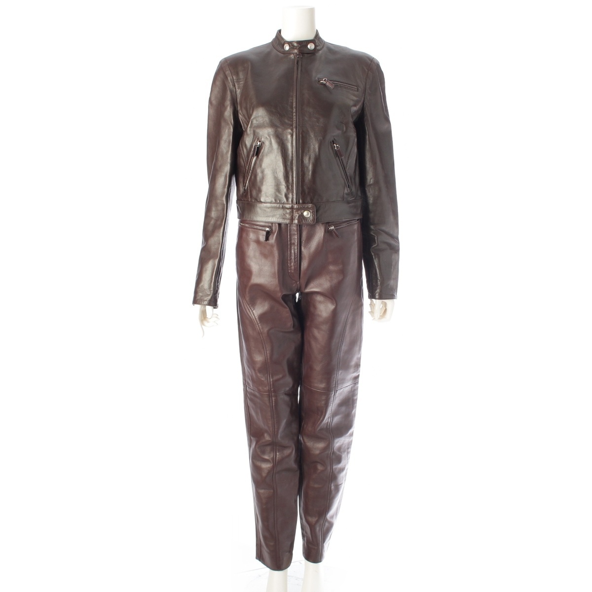 - グッチ 1995年 レザー トムフォード バイカースタイル シングルライダース パンツセットアップ ダークブラウン 44/42【中古】