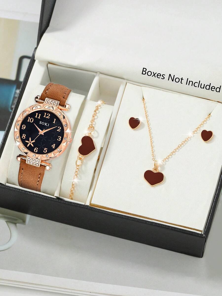 - 腕時計 レディース セット 女性用ウォッチセット ゴージャスなファッションダイヤモンドケース 丸型ダイヤル クォーツ腕時計とハート