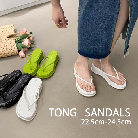 - レディース トングサンダル スタイルアップ オープントゥ 厚底 美脚 脚長 ビーチサンダル 22.5cm(35) 黒