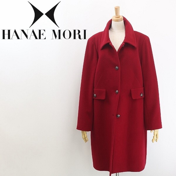 > 【HA693】美品◆HANAE MORI NOUVELLE TAILLE ハナエモリ ヌーベルタイユ アンゴラ メタルボタン カラー コート 赤 レッド 44 大きいサイズ