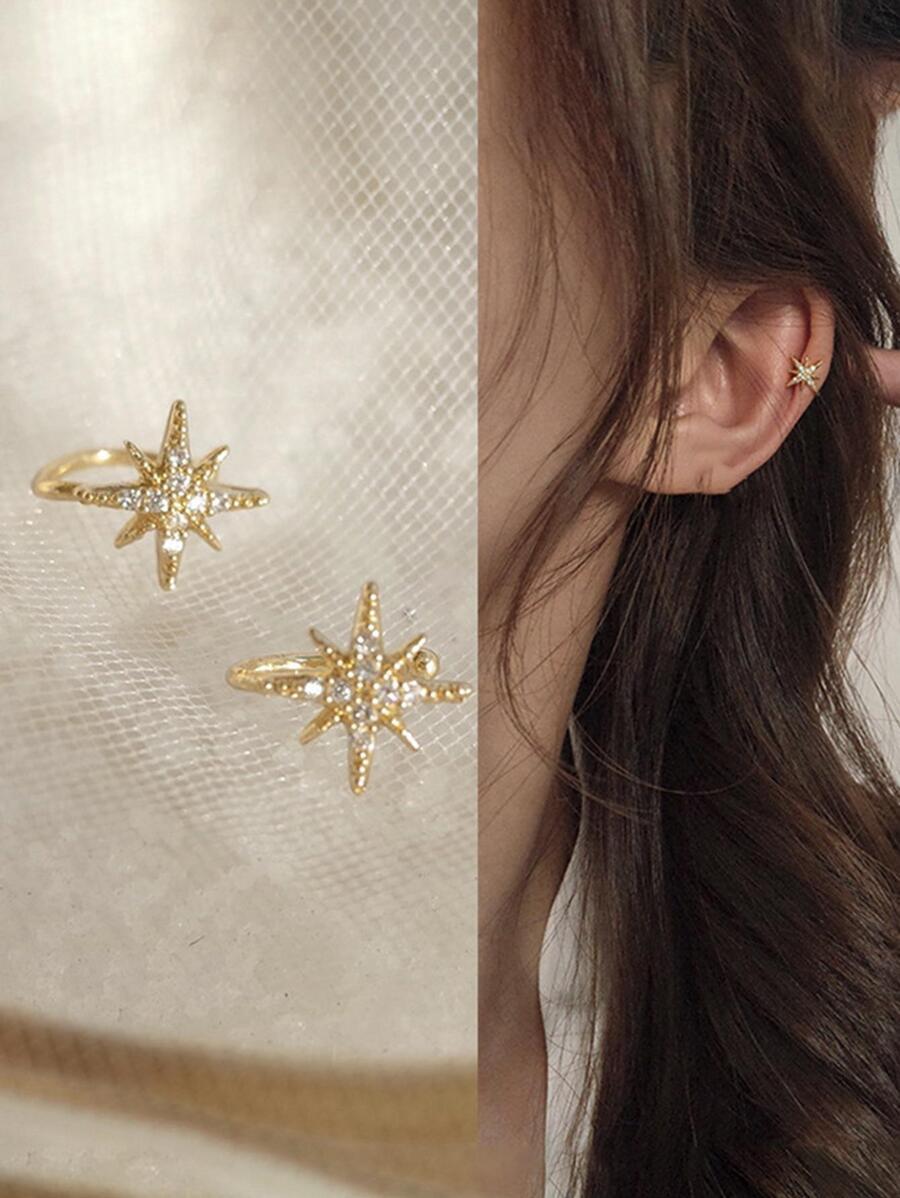 - ジュエリー レディース イヤーアクセサリー キュービックジルコニア スターデコレーション イヤーカフ