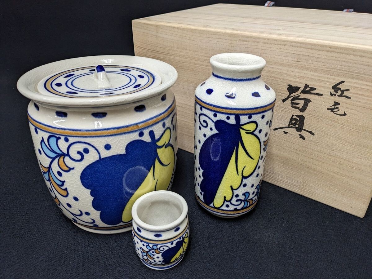 > W175 京焼 横田鳳山造 紅毛写 オランダ皆具 水指 杓立 蓋置/100