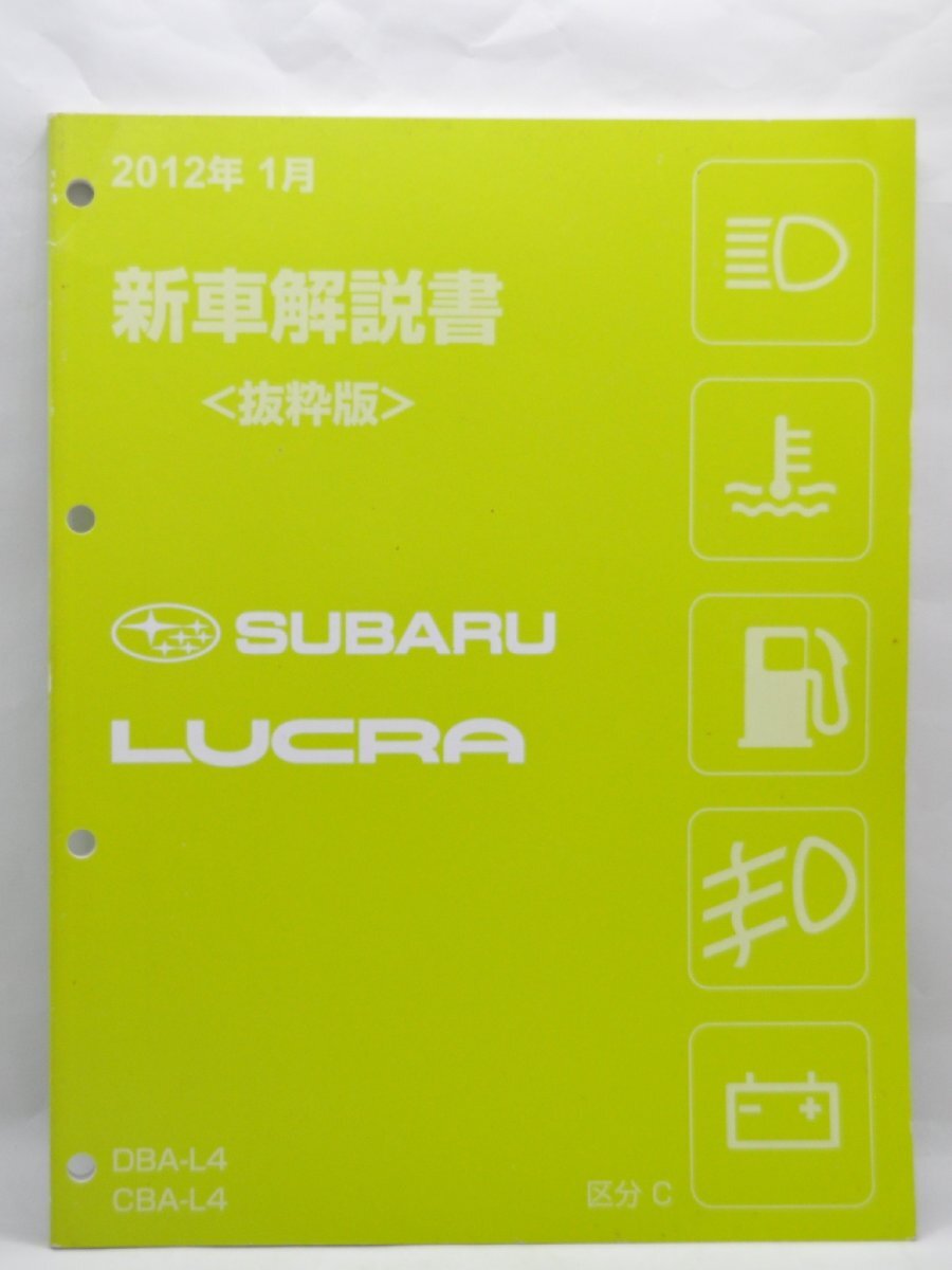 - [W5729] SUBARU LUCRA 新車解説書<抜粋版> 2012年1月 U5690JJ / スバルルクラ DBA-L4 CBA-L4 区分C 富士重工業 中古整備書