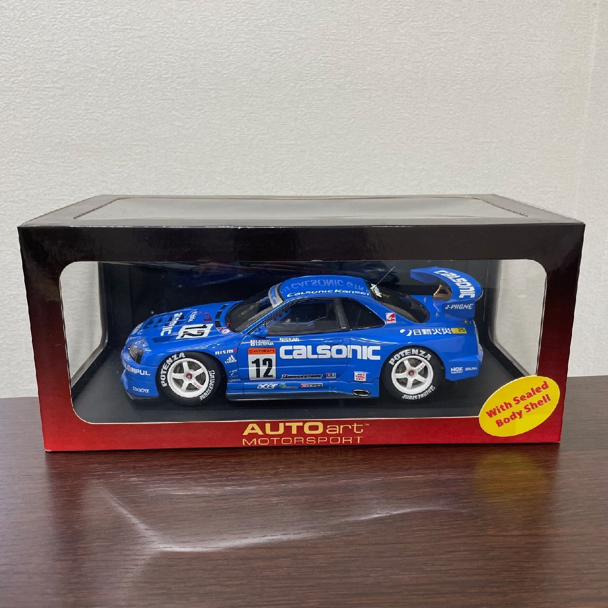 - ■AUTOart 1/18 NISSAN SKYLINE JGTC 2001 ♯12 CALSONIC GTR R34 日産 スカイライン オートアート ミニカー 車 現状品□■63