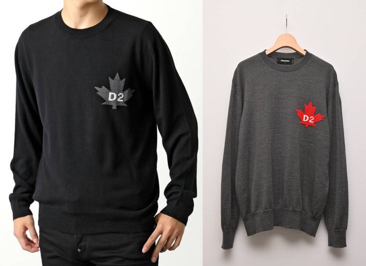 - DSQUARED2 ディースクエアード ニット D2 リーフ グレー セーター GA3103