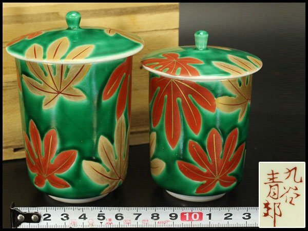 - 【銀閣】九谷焼 作家物 湯呑碗 一対 未使用 旧家蔵出 送料無料(A879)