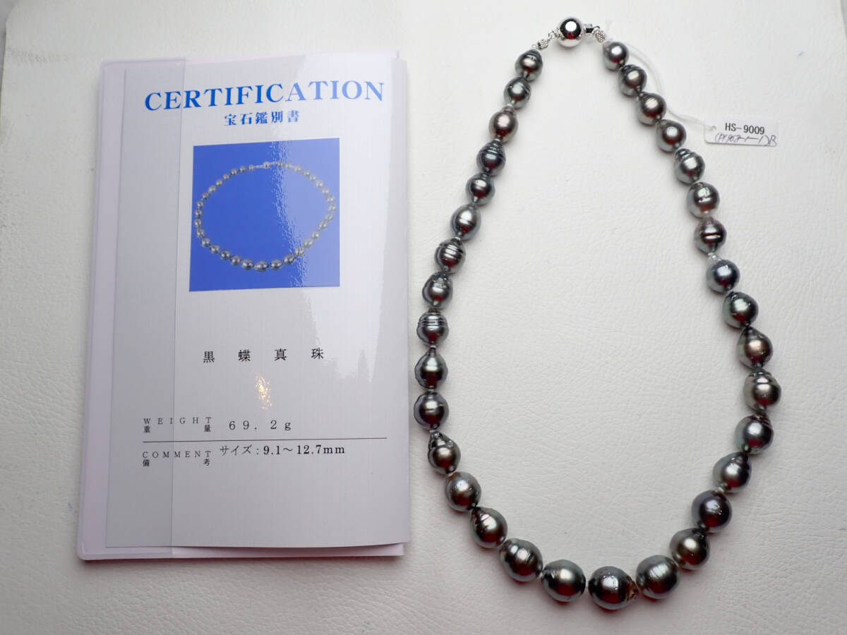 - 16●黒蝶真珠 ネックレス 9.1~12.7mm 69.2g 鑑別書付