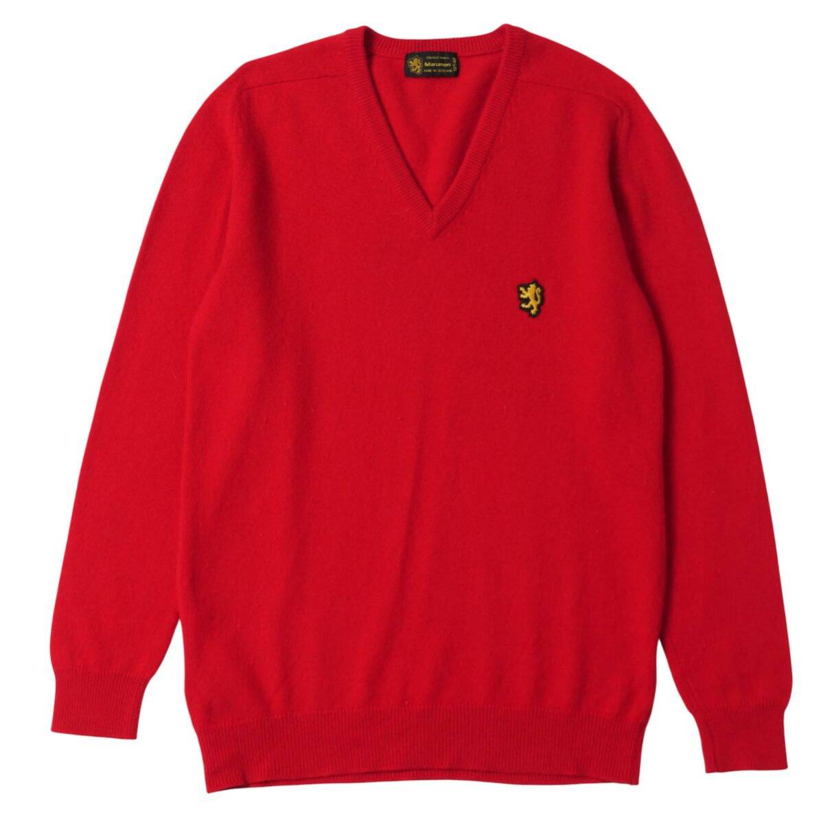 - TJ2998▽スコットランド製 プリングル PRINGLE × マルマン Maruman 総カシミヤ ワッペン装飾 Vネック セーター レッド系