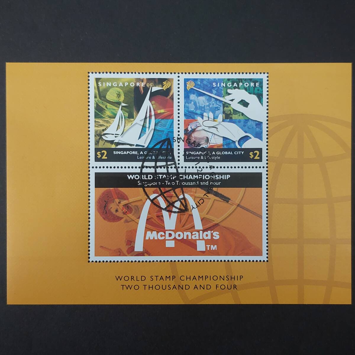 - L063 シンガポール切手「『2004年シンガポール第1回切手世界選手権』記念切手小型シート ジョイント企業:マクドナルド」2003年発行 消印有