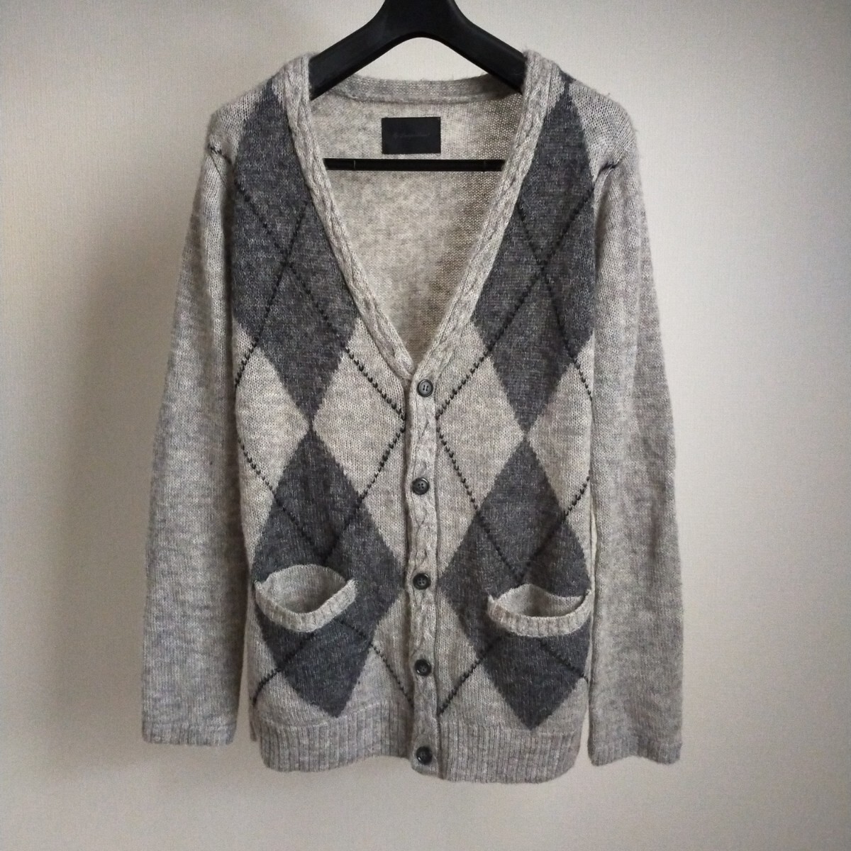- LOUNGE LIZARD アルパカ混 アーガイル柄カーディガン ラウンジリザード グレー