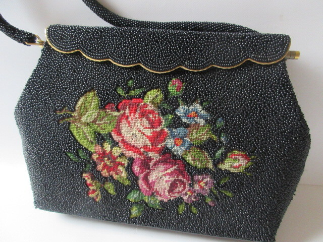 - アンティーク 香港製 手刺繍とビーズのバッグ パーティバッグ