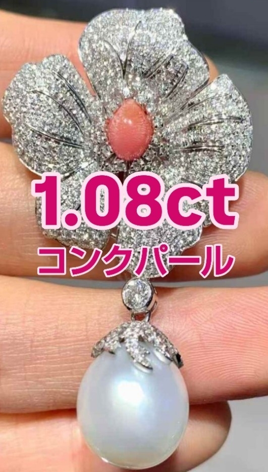 > 希少!1.08ct コンクパール ジュエリー/3WAYリング・ペンダント・ブローチ 「偶然の奇跡でしか出会えない、フラミンゴピンクの輝き」