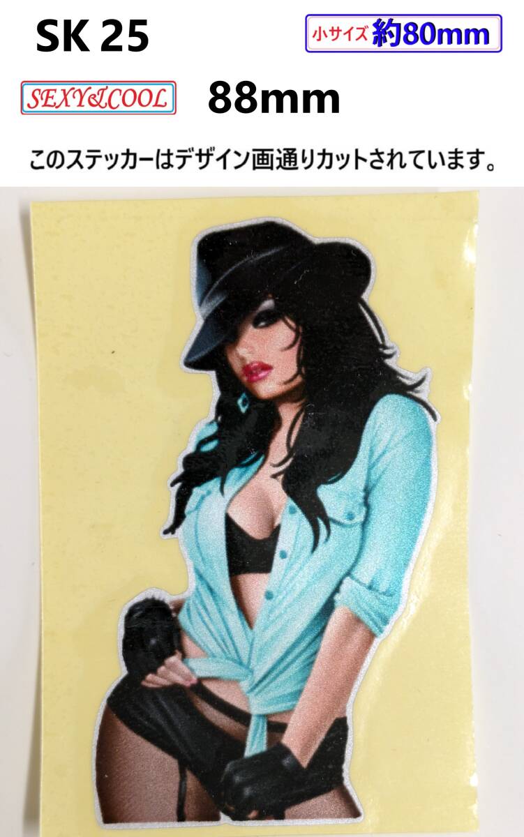 > 80mm級 SK25-16 キラキラ 美人 クール カッコいい セクシーガールステッカー セクシーステッカー レトロ ギター PC スマホ ボード