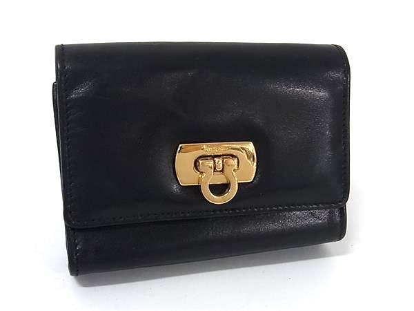 > ■美品■ Salvatore Ferragamo フェラガモ ガンチーニ レザー カードケース カード入れ 名刺入れ ブラック系 DK6161