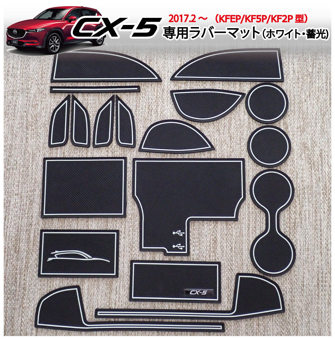 > マツダ CX-5(KF系)インテリアラバーマット(ホワイト/白/蓄光)ゴムマット/ドアポケットマットフロアマット CX5 MAZDA