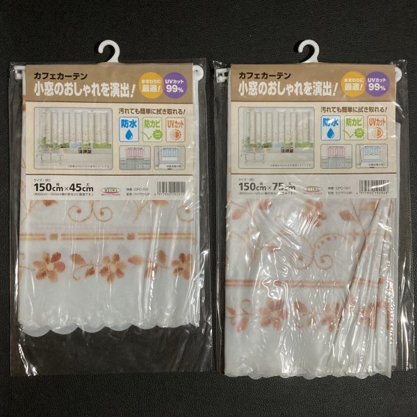 - 未使用 防水 防カビ UVカット カフェカーテン 水まわりに最適 150×45㎝ 150×75㎝ CFC-101 各1枚 まとめて2枚