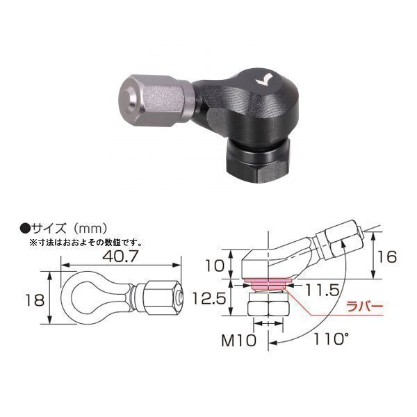 チューブレスホイール専用の横向きエアーバルブです。