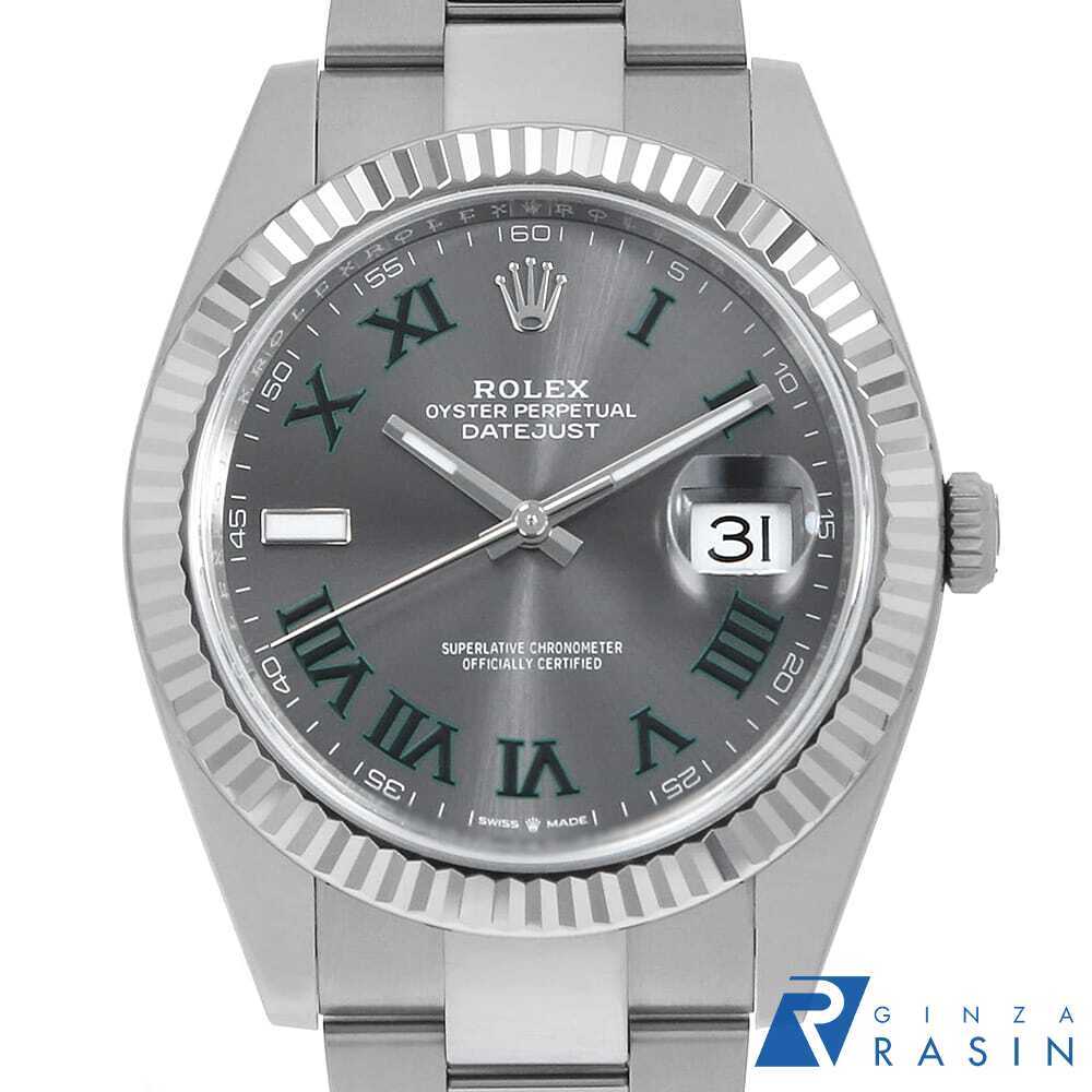 - ロレックス デイトジャスト41 126334 スレート (グレー) グリーンローマ 3列 オイスターブレス ランダム番 中古 メンズ 腕時計