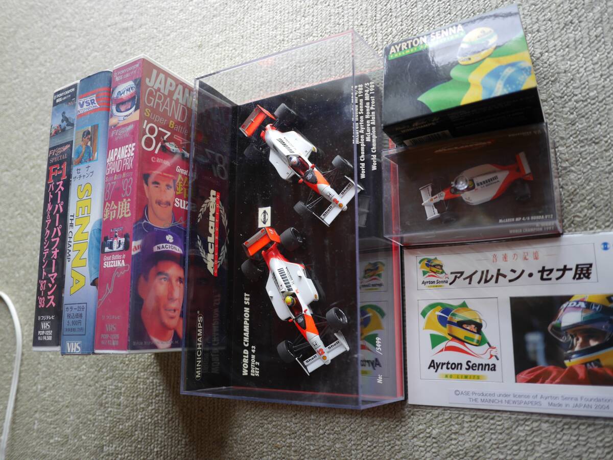 - アイルトンセナ関連のビデオ(中古)3本 ミニカー2個(未開封)ヘルメット1個(未開封)マグネット(未開封)まとめ売り