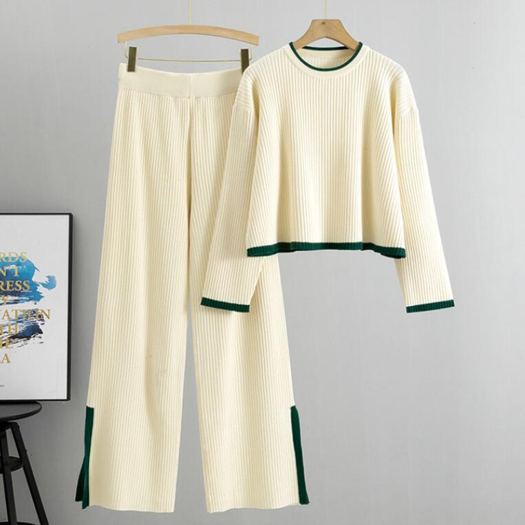 - M1015 パンツスーツレディース● 着心地抜群 20代30代40代 ● ニット素材 秋冬 上下セット 綺麗 アイボリー