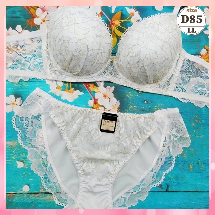 > Zd8515◆新品 ブラショーツセット【D85/LL】下着 ランジェリー 脇高 谷間メイク 美胸 金花ラメ刺繍 白