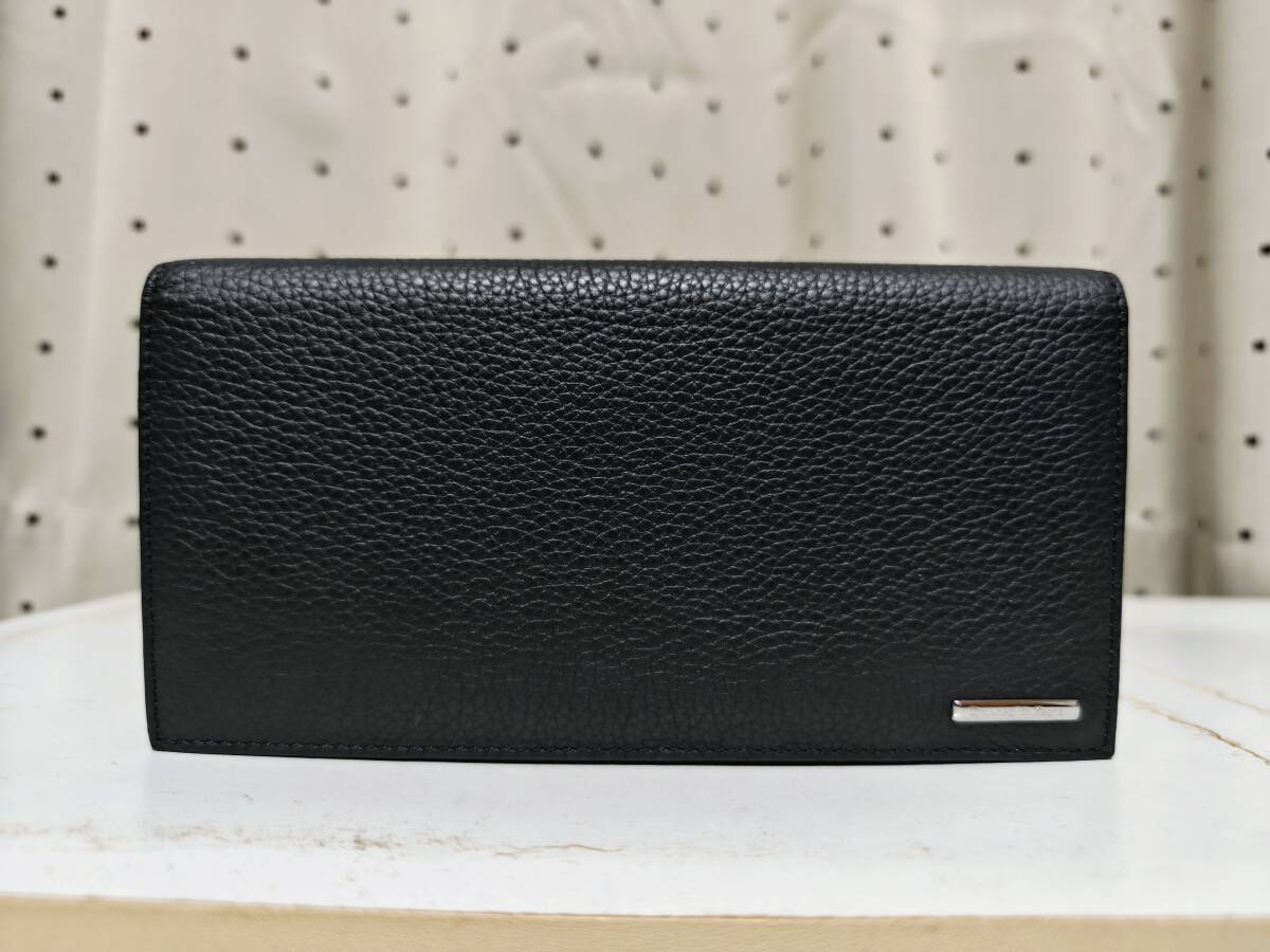- 未使用品 Ermenegildo Zegna エルメネジルド ゼニア 小銭入れ付き レザー 二つ折り ロングウォレット 長財布 ブラック