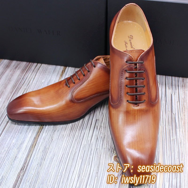 > 定価9万★最高級 牛革 ビジネスシューズ 本革 レザーシューズ 新品 紳士靴 超希少 職人手作り 通勤靴 フォーマル 革靴 ブラウン 25.5cm