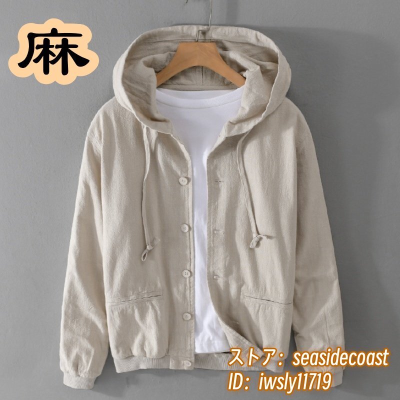- 新品★ リネンジャケット 春夏パーカー 高級麻ジャンパー ブルゾン フード付き 日焼け止めジャケッ 清涼感 紳士服 無地 四色 ベージュ S