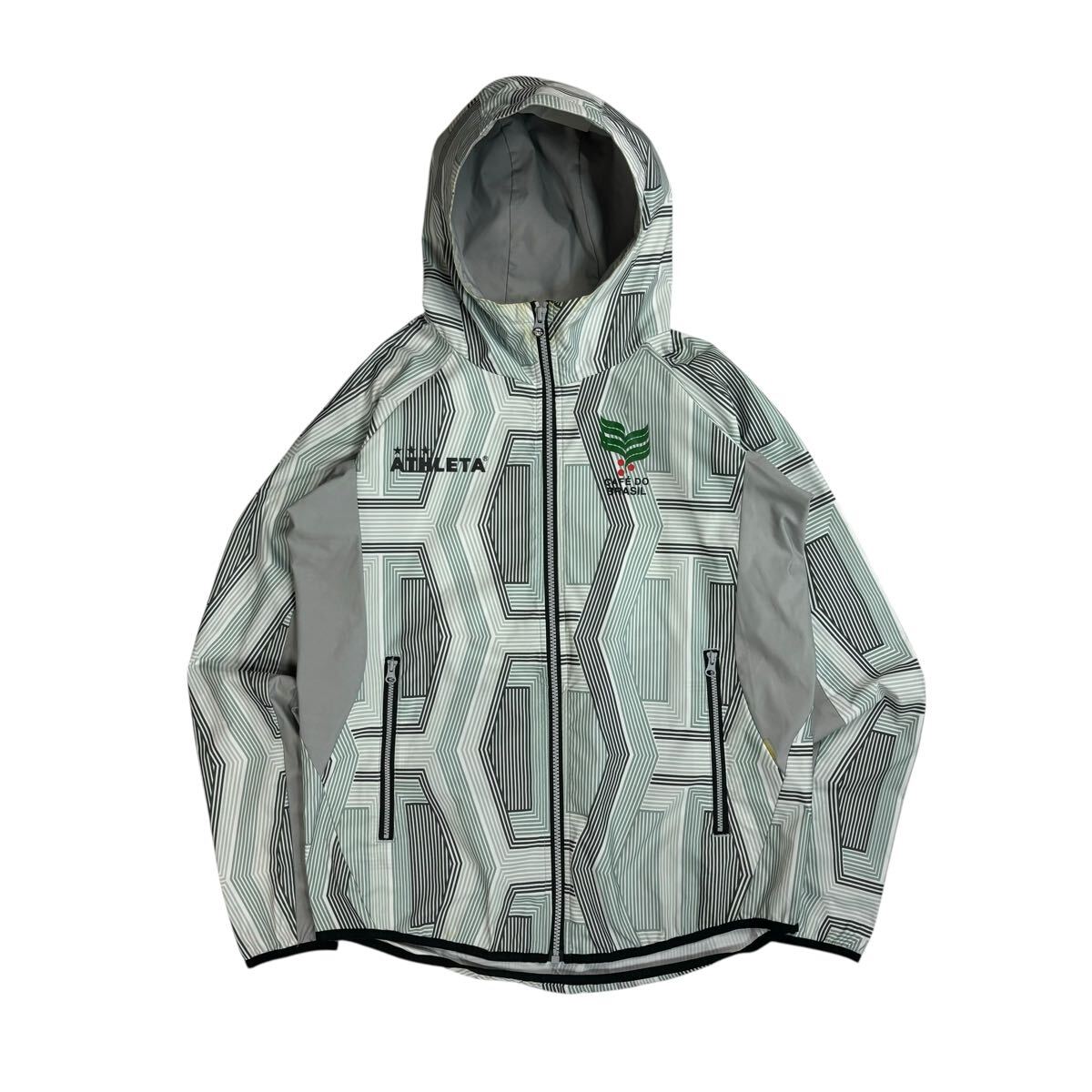 > (KA1017) ATHLETA アスレタ ジップアップ ウィンドブレーカー ジャケット パーカー Mサイズ ホワイト系 総柄 スポーツウェア サッカー