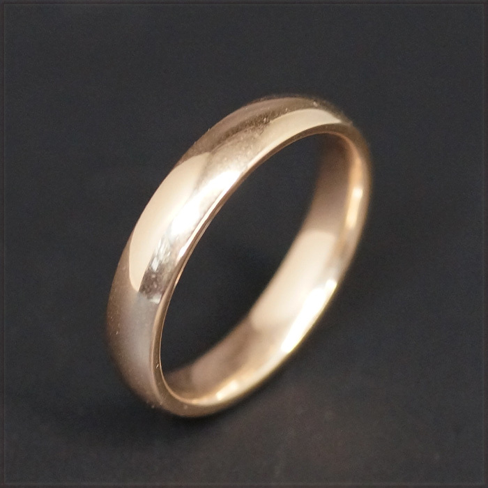 - [RING] 14K 585 Rose Gold Plated ハイクオリティ スムース 甲丸 ローズ ゴールド シンプル 4mm リング 17号 (2.7g)