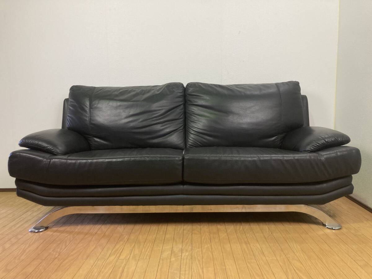 > ★激安★ 3人掛け ソファ 2.5人掛け ワイド 黒 ブラック 激安 格安 アーム 革ソファ 肘置き 大阪 引き取り可