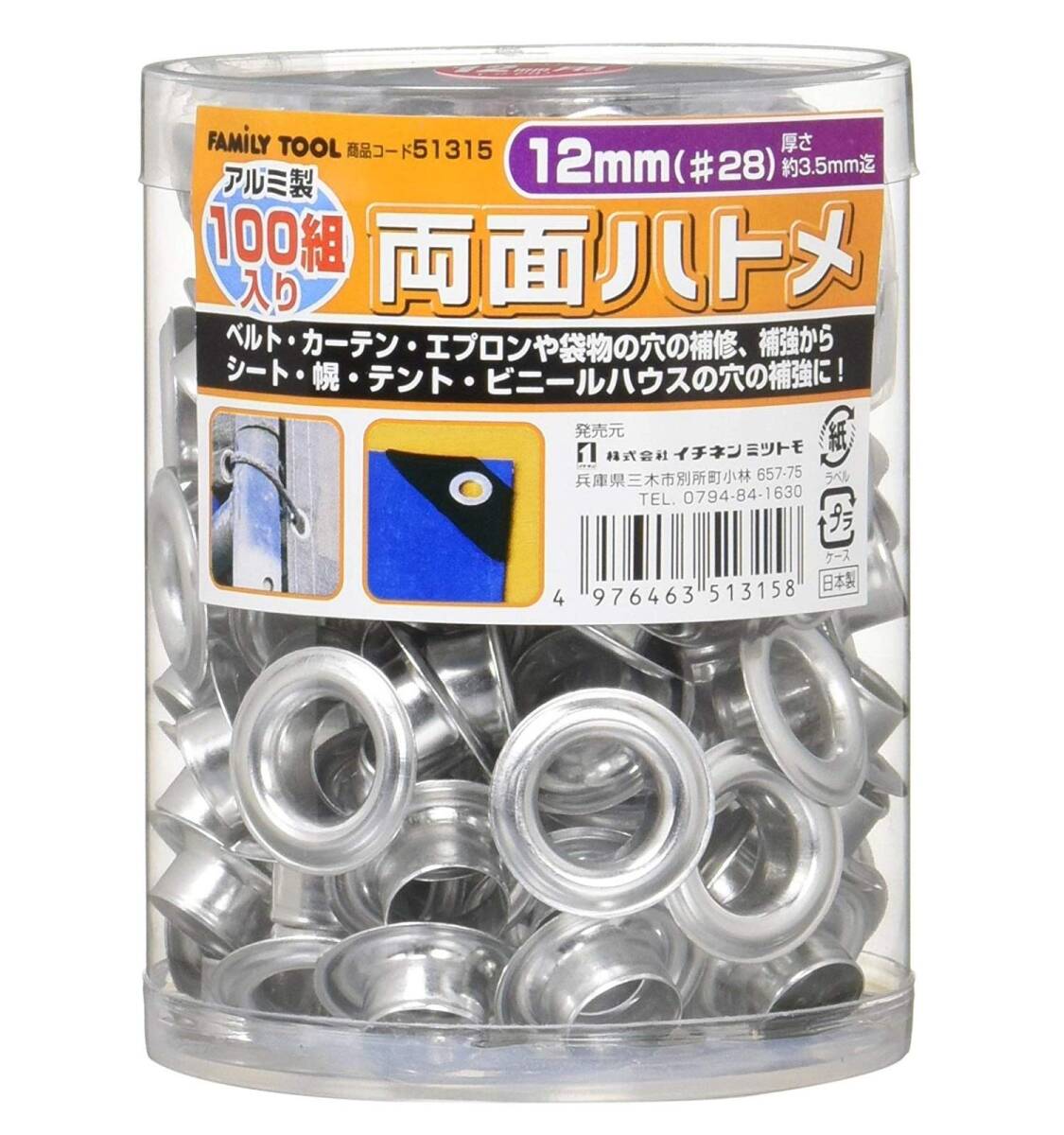 - イチネンアクセス ツール事業部 イチネンアクセス FAMILY TOOL(ファミリーツール) 両面ハトメ アルミ 12mm×100組 51315