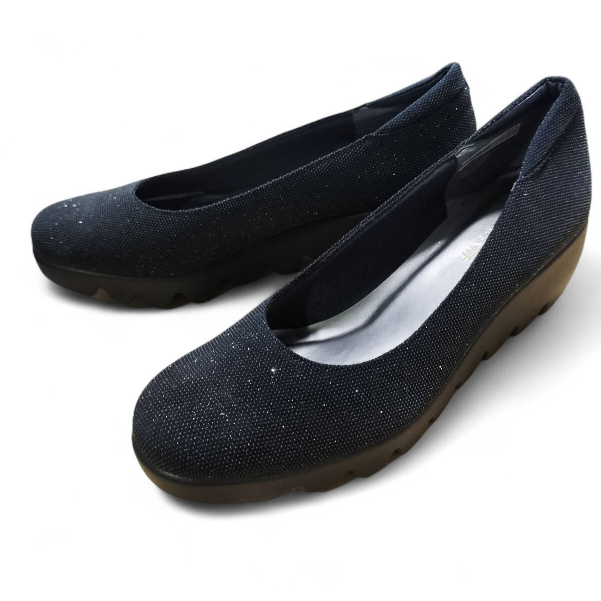 - 【未使用品・箱付き】HILLS AVENUE ヒルズアヴェニュー パンプス ラメ ウエッジソール ネイビー 24.5㎝